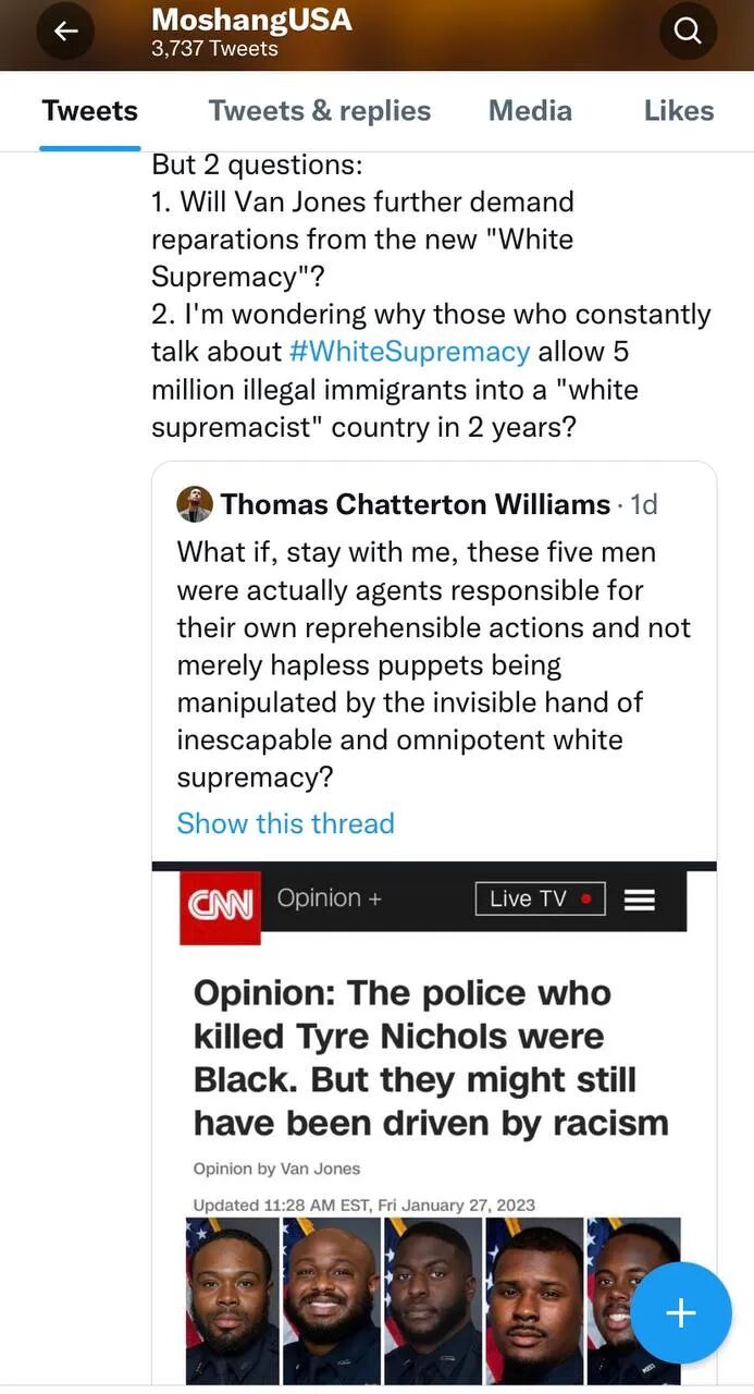 即使死者和五名涉事警察全是黑人,也阻挡不了美国这些所谓的主流媒体借机发挥,加一鞭种族分裂。这位Von Jones几年前还属于能给民主党提点小意见的“中左”,看来这几年抓住woke文化的大好形势迅速极左化了。