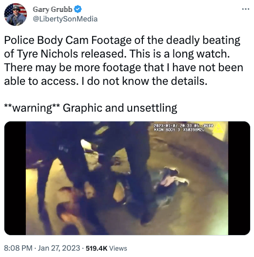 两天前发生了一起悲剧,位于田纳西州的孟菲斯,五名警察涉嫌过失谋杀罪,导致一位叫泰瑞·尼科尔斯(Tyre Nichols)的年轻人在被捕过程中遭遇毒打,三天后不治身亡。