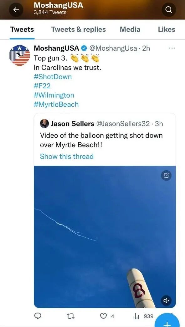 美国很长时间没有出现过这种万众通过自媒体关注天空的盛况了,民意汹涌,集体殷切期待美军真枪实弹地表演一把Top Gun 3之炸元宵球!