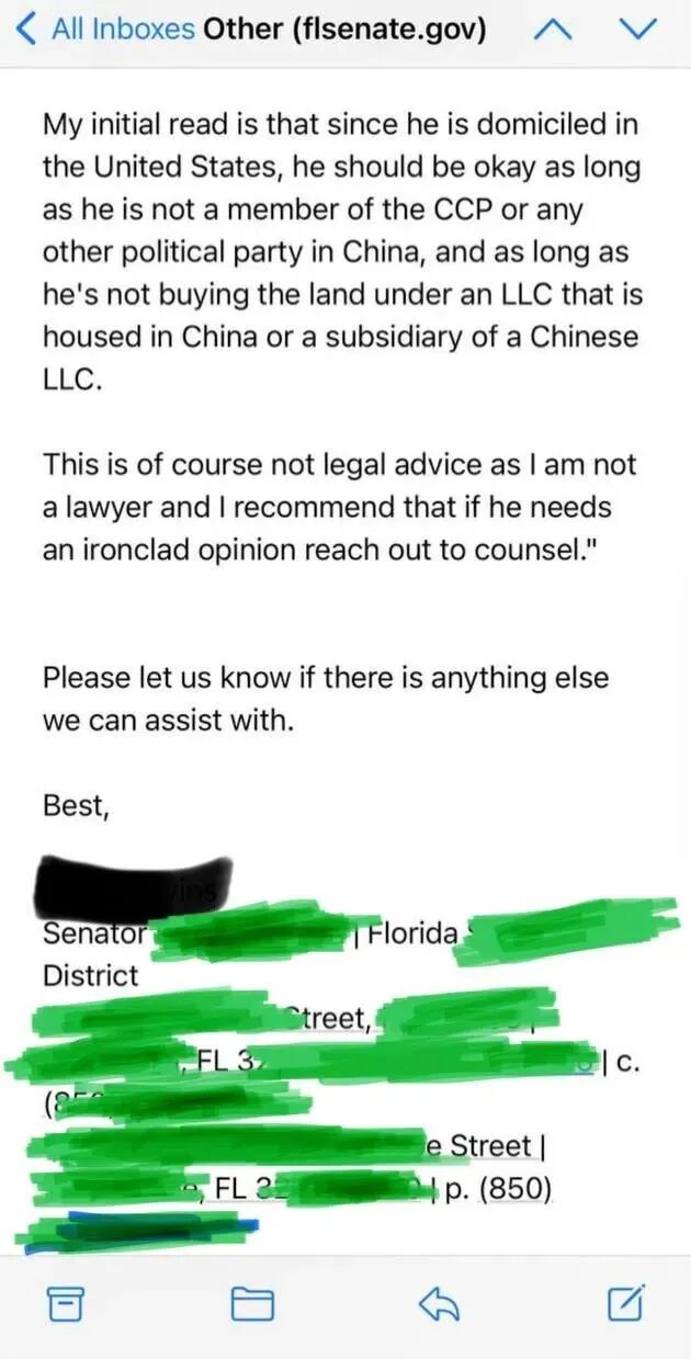 佛州华人在周五给州参众两院议员发信,尤其提到了H1-B、L1签证等这类华人居民的情况,这是获得的回复。