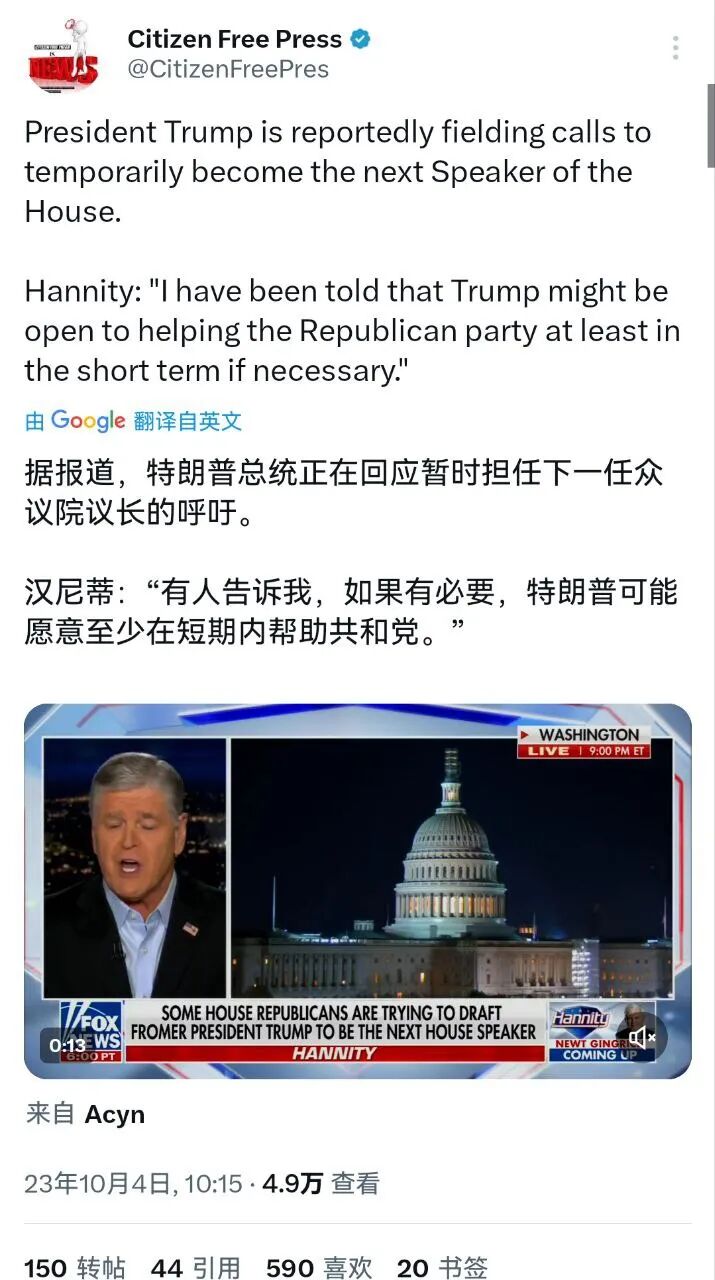 很快在吵吵闹闹之间,有人开始网上玩提名新议长的游戏,还有议员打算正式提名川普做议长。