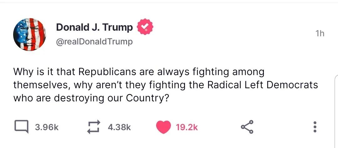 即使川普也并不赞成这样的操作,在不点名的情况下就此事点评了一段:“为什么共和党人总是内斗,而不是与摧毁我们国家的极左民主党人作斗争?”