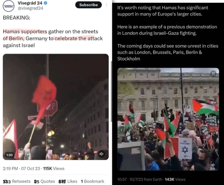 这种“大爱”还表现在,现在伦敦、柏林、布鲁塞尔、巴黎等欧洲大城市街头,任由支持哈马斯的人群摇旗呐喊,庆贺恐怖袭击。这种现象说来话长了,跟欧洲左翼的难民政策和绥靖的国际观,都是种瓜得瓜种豆得豆的关系。美国本土一样有类似,表现形式只能在电报上说说了。