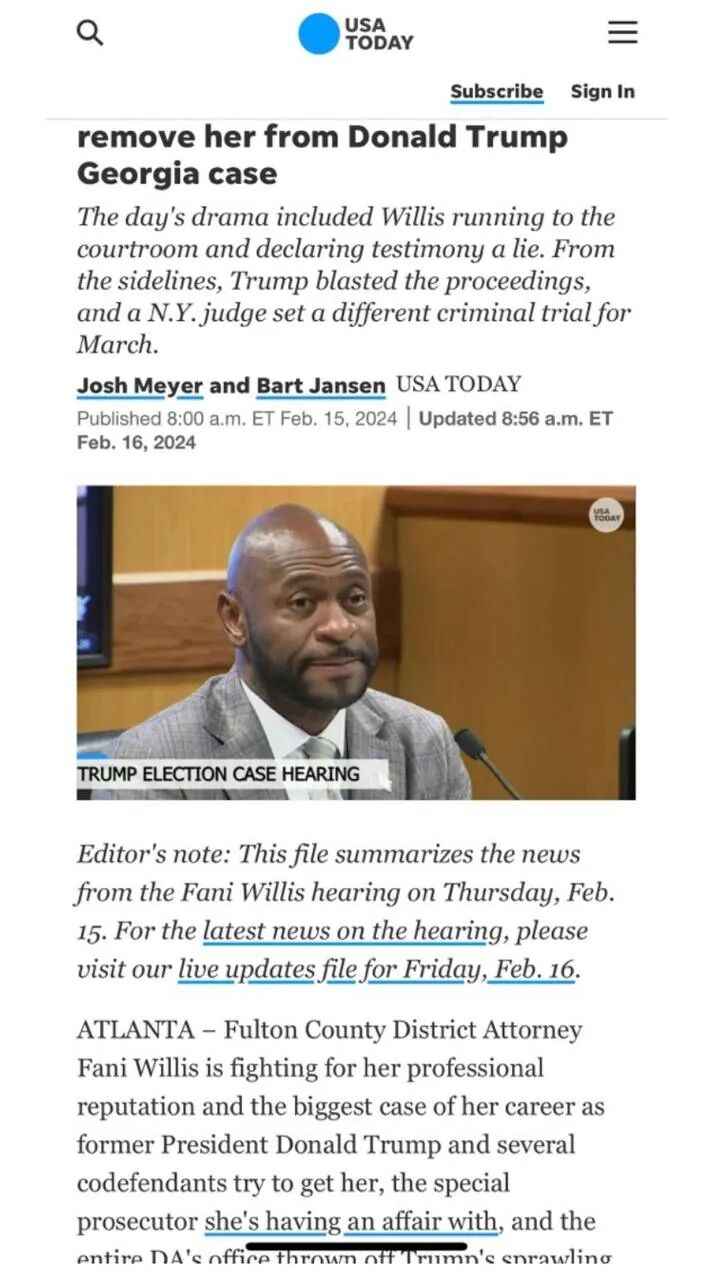 佐治亚州富尔顿县状告川普和十八人破坏选举的州检察官,一个和纽约总检察长一样革命斗志昂扬的黑人女性法尼·威莉(Fani Willis),任命了他的情人内森·韦德(Nathan Wade),一个黑人男性律师,控告川和十八人刑事案。