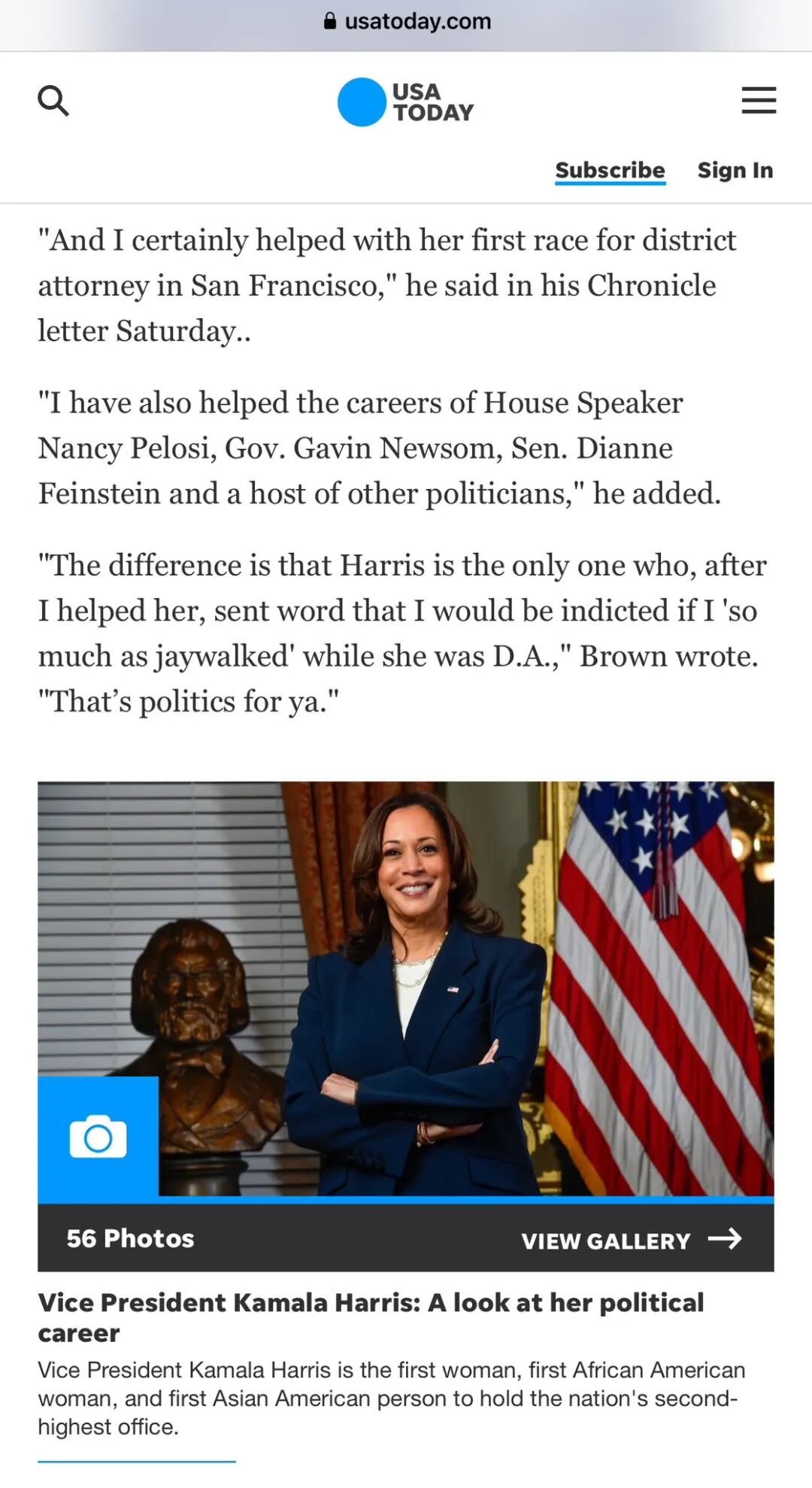 这位大手大脚花钱的主,官运在2003年后不再那么亨通,陷入FBI的贪腐调查。Brown幽幽口诉那段经历时提及,他帮过的人除了贺锦丽,还有纽森,佩洛西,Feinstein等多位加州民主党大佬,但是在他困难阶段喊要把他抓起来的,还只有贺锦丽一人。