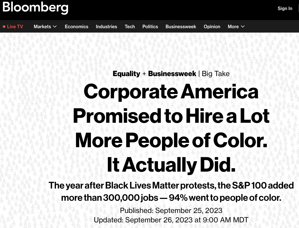 而男性却要在民主党DEI政策“关照”下,实质上受到一层性别歧视,尤其是白人。一组数据显示,BLM运动之后,美国S&P百强企业创造了30多万个工作机会,94%给了少数族裔,仅有6%招了白人。