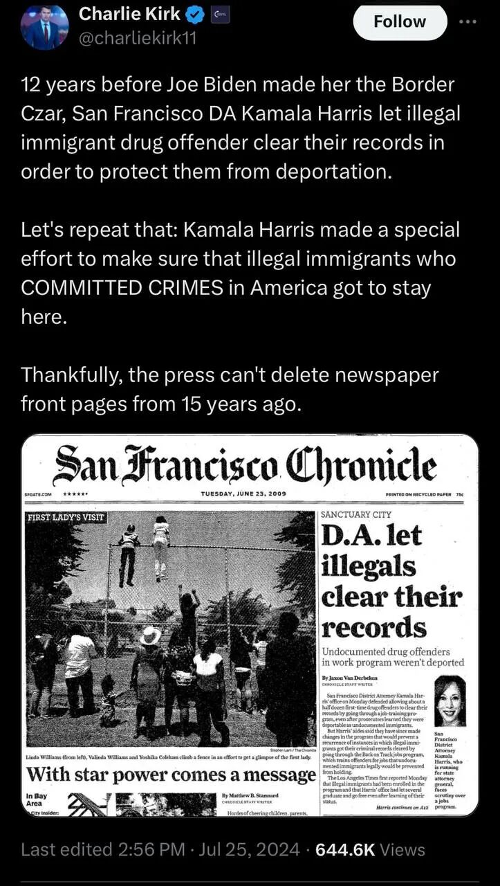13、帮非法移民销罪方便留美 https://x.com/charliekirk11/status/1816578351462584419