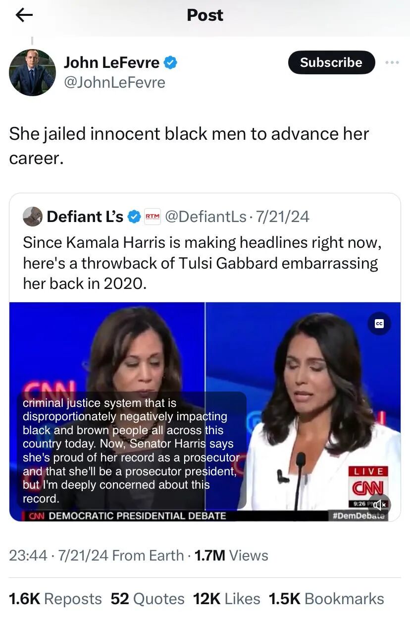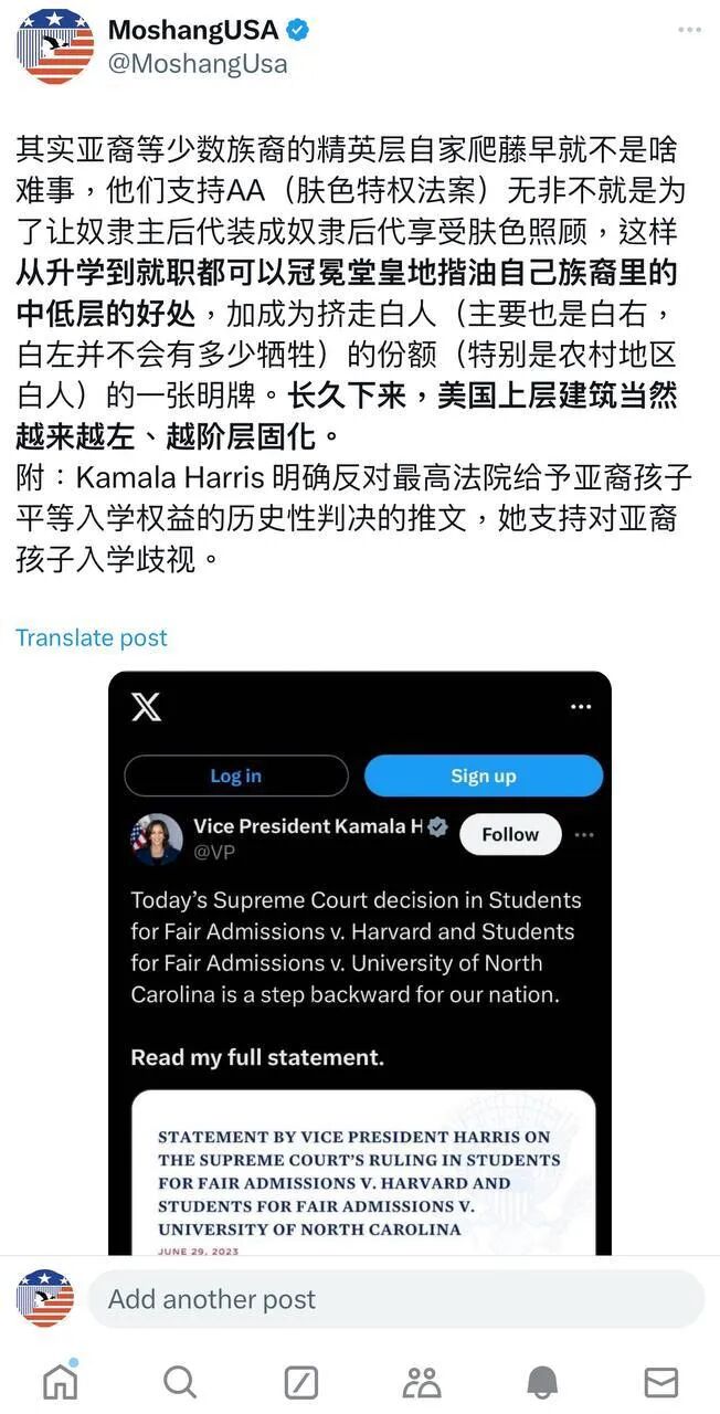 7、哈里斯比搞社会主义的桑德斯还极左,要追求结果平等 https://x.com/EndWokeness/status/1815834669293924449