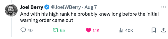 “军队的海外部署大约两年前就安排好了,尤其是预备役和国民警卫队,他们都是有军队以外的工作和生活的,需要足够多的时间提前量让他们安排好个人生活。他作为E8/E9的高级士官,就是最早知道他的单位要被动员部署的那批人。临阵脱逃的怂货,这锅他铁定得背。