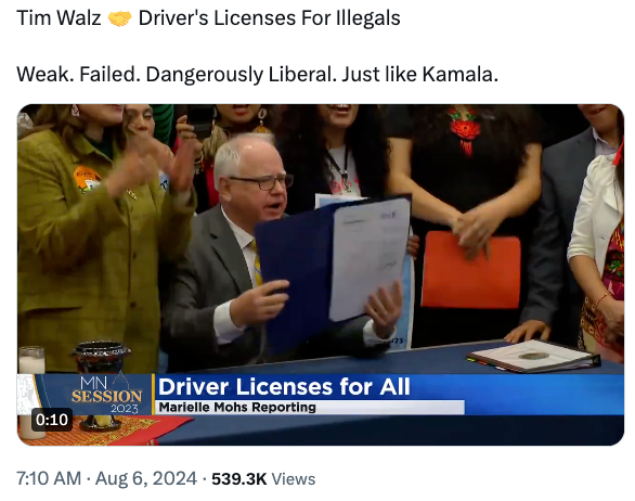 明州约有8.1万非法移民,Walz签署法案给所有非法偷渡者发驾照,这不光是在变相鼓励非法偷渡浪潮,而且在选举不要求出示证实公民身份的系统下,等于为颠覆选举诚信增加舞弊的机会积极铺路,并且将此影响辐射出明州波及全美。