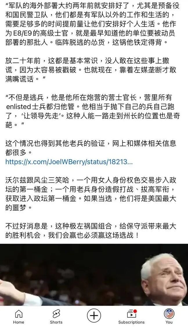 哈里斯选择的副手Walz现在深陷盗窃军功丑闻之中,也就靠左翼媒体一手遮天来帮助隐瞒和欺骗,实际上连CNN都顶不住,变相承认他撒谎了。这事回顾一下,过程是:
