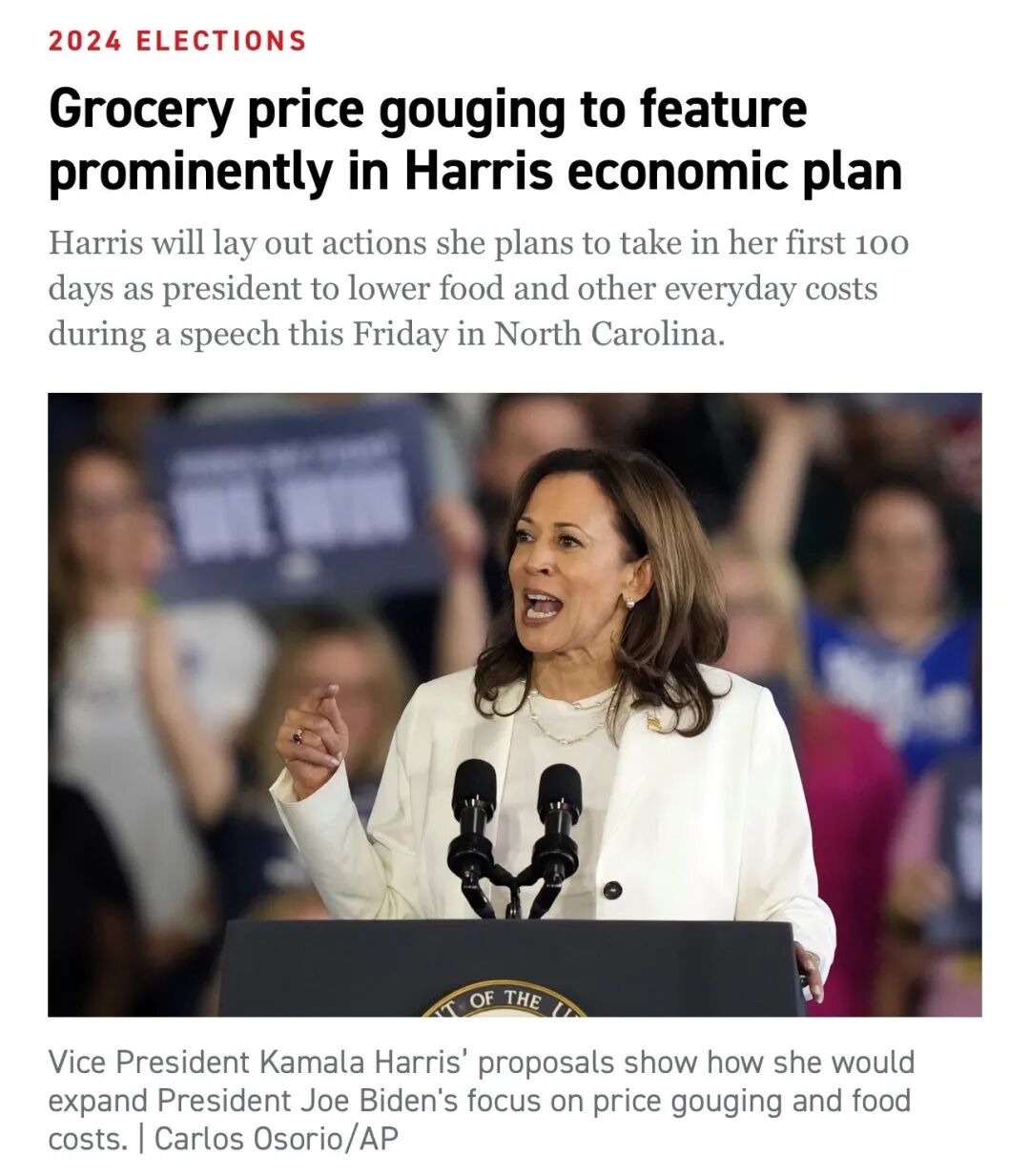 接下来把X上这个分析哈里斯要给食品控价的经济政策,将带来什么影响的帖子,给翻译一下,大家感受一下。