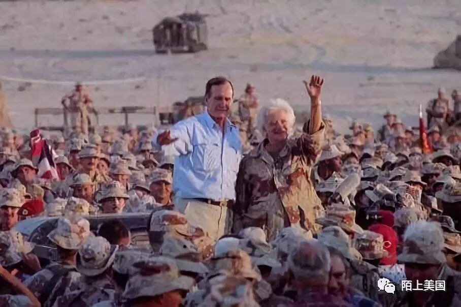 第一次海湾战争 布什芭芭拉慰问在沙特的将士 historyguy.com