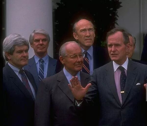 布什的国防部长人选出了问题,他就从众院请出了切尼,这样共和党国会的一个领导位置就空了出来。一个年轻人想,嗯,我为什么不选选试试呢?这个年轻人叫纽特·金里奇,他是搞政党对立的高手。在他领导共和党国会的20年,共和党的政治策略越来越和老布什的理念背道而驰。