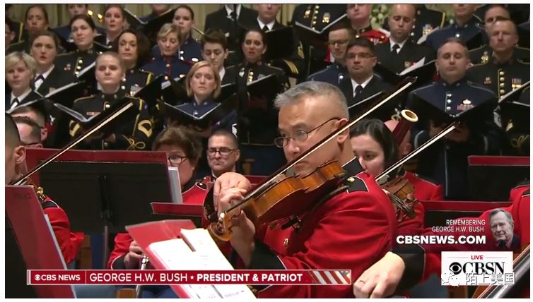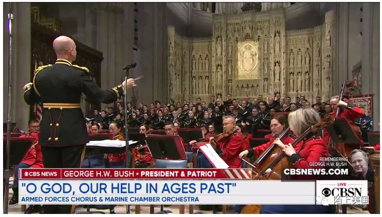 因为老布什总统的二战老兵背景,在葬礼上给他奏乐的是美国军队合唱团和海军乐团。