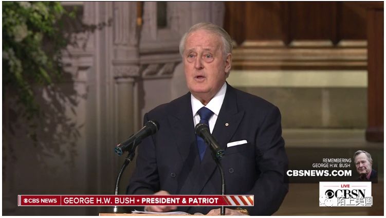 加拿大前总理布莱恩·马尔罗尼(Brian Mulroney),应邀给老布什致悼词。