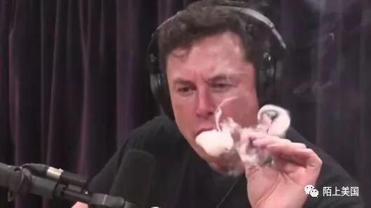 同样9月份,他又马不停蹄地再闹了一桩遭指指点点的事。应邀去录一个夜间谈话逗乐节目,被谐星主持人Joe Rogan一蛊惑,就情不自禁地现场表演抽大麻。