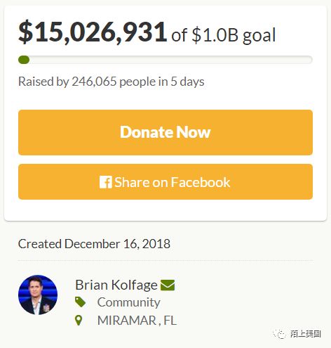 忽如一夜飓风来,川普以参议院不拨款修墙为由,让政府部门部分关门,这次持续时间也许会很长;而川粉们在民间,墙粉喊出富强粉的口号,开始众筹修美墨长城。GofundMe上发起的相关捐款,看上去不太像随机自发的一次巧合,更像一场背后有规模运作的政治运动。