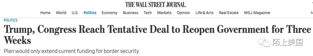 无论是《华尔街日报》还是《纽约时报》都判此局政府关门大战,以川普:民主党,0:1的Art of No Deal结果告负。