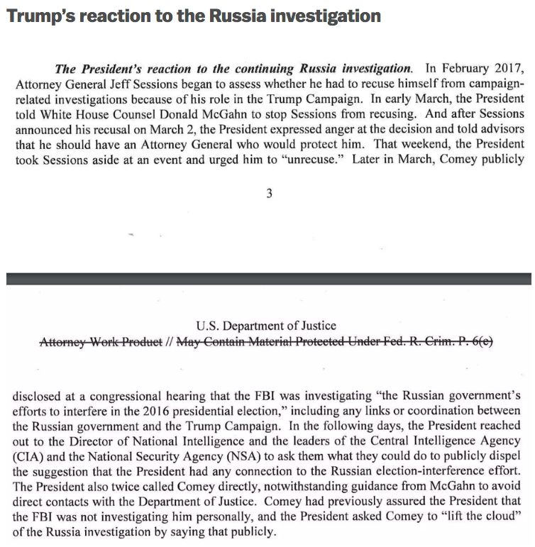 从《斯塔尔报告》到《穆勒报告》,虽然不能说政府的透明性有了巨大的进步,但公开毕竟比不公开好。我们在这里就精选几段穆勒报告里的实锤编译一下,也不枉了群众这两年来的期盼,愤懑和焦虑(取决于你来自哪个阵营)。即便你是中间派,也没有理由对这个报告持冷漠态度,毕竟耗时两年的穆勒调查,耗资上千万,每分钱都出自纳税人的口袋,就算丢到水里还能听个响动,更不要说这个调查涉及的是自由世界的领袖是否犯罪的问题。