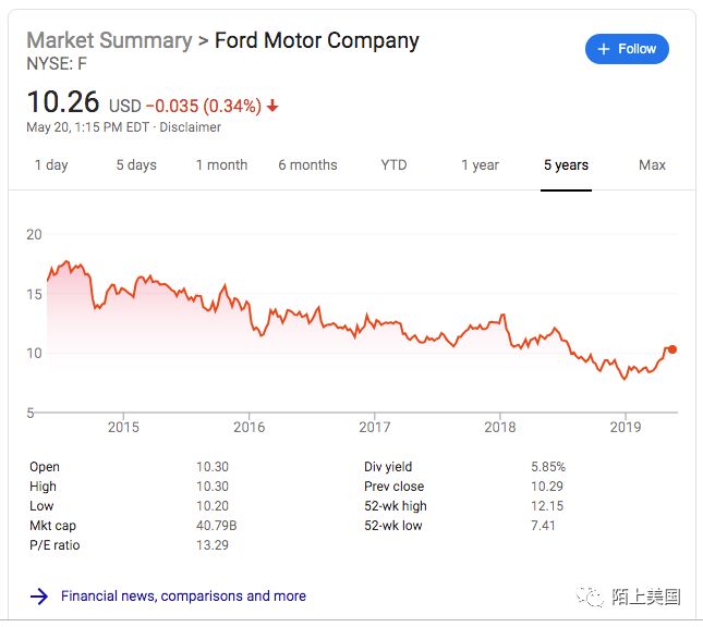 过去五年福特的股价变动