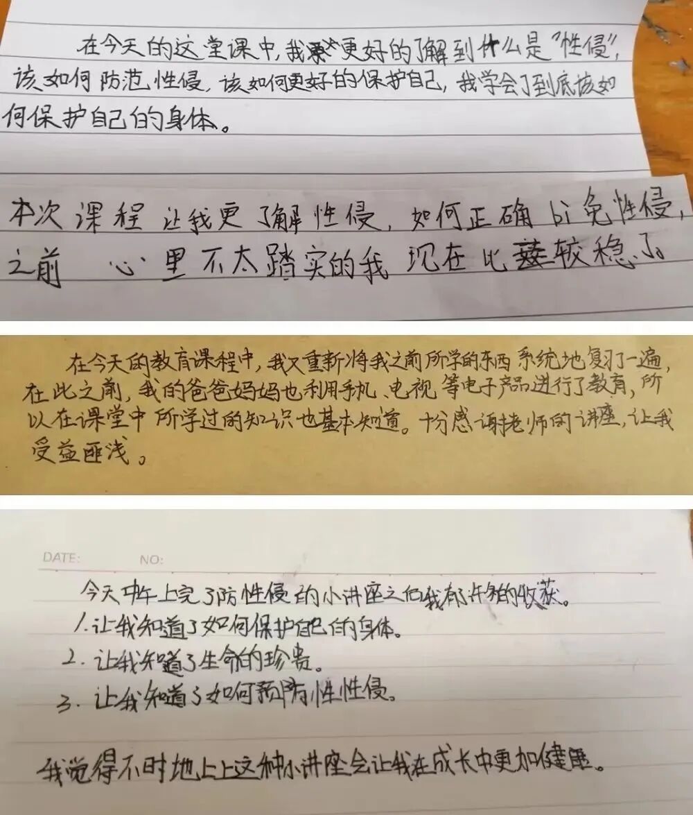 课后一位小朋友的留言让我忍俊不禁:”这节课让我更了解性侵,如何正确避免性侵,之前心理不太踏实的我,现在比较稳了“。