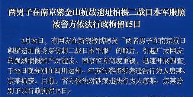 “事情过去80年了,我今天为什么和同学们说这些,两个原因,第一,今年2月,有个句容的年轻人,穿着日本军服跑到南京紫金山抗日旧址去COSPIAY,去羞辱那些为国捐躯的烈士!句容人,你们怎么了,这些不共戴天的血海深仇,到底是真不知道,还是都忘记了?!”