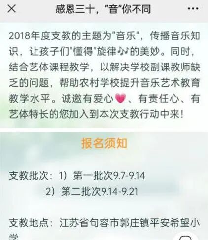 很遗憾,大学毕业后的我很快就把初心抛到脑后。二十多年里,我以生存为借口,长期沉迷于功名利禄,果然学会了拿微不足道的成就骗自己,真的会莫名其妙感到一阵的空虚,在没完没了的尔虞我诈中变得麻木佛系。直到,2018年8月。看见无锡平安人寿公司发布的一则“招募短期志愿者前往希望小学支教”公益海报。