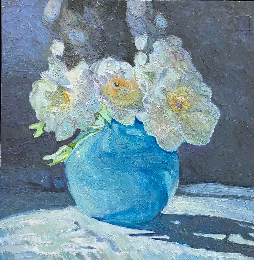 当然,也只有守在他边上人,方能体会他多年來全身心的投入,摒弃繁华尘世的享乐,独自不折不挠地求新求变,既寻求东方元素,又掌控西方技巧,既有清新的画风,亦具厚重的底藴。不投机取巧,不哗众取宠,不敷衍了事的作画态度令人肃然起敬。