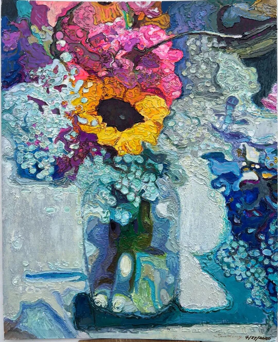 孙林画花,果然又与众不同,花在人们生活的每个角落綻放,各具其不同的独特的美,让人乍看之下顿然心曠神怡,心情大好。