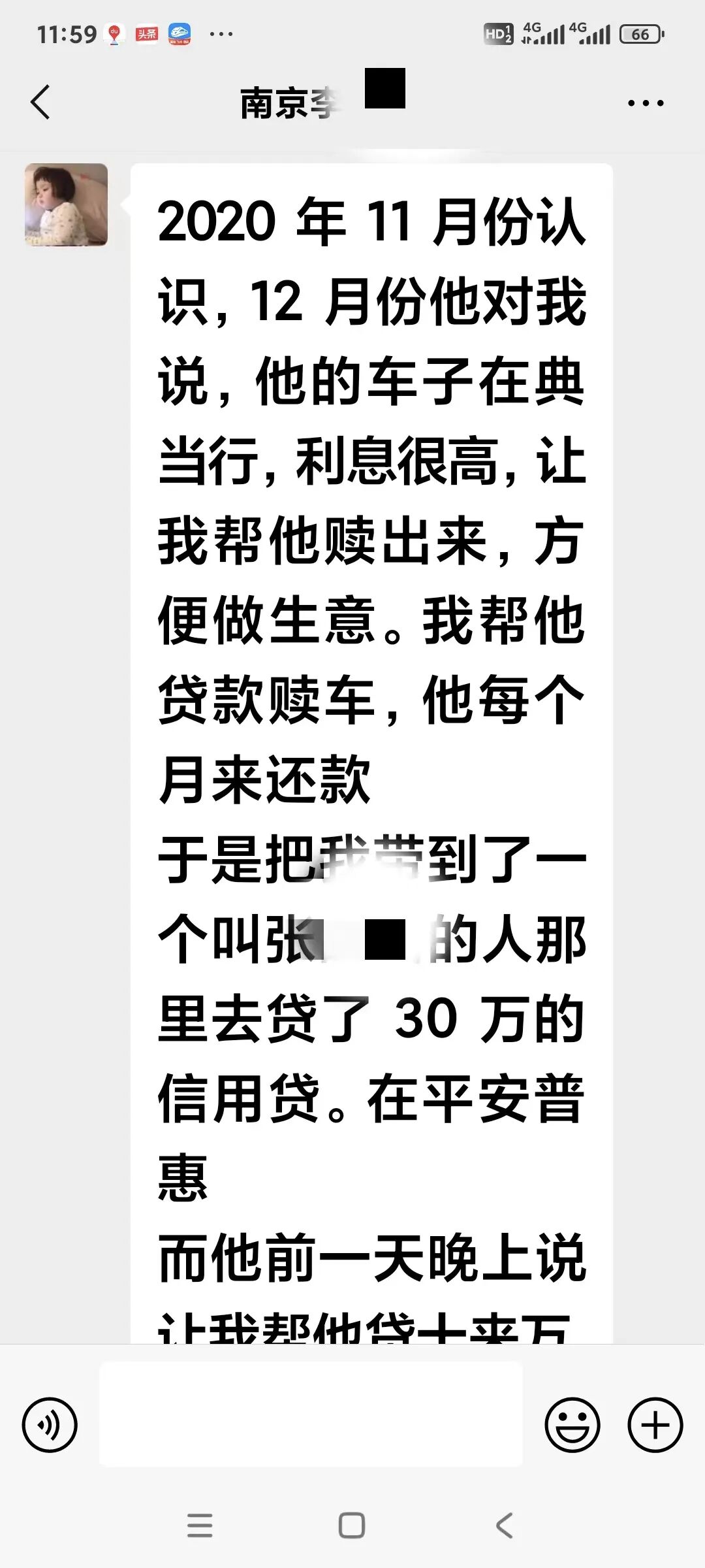 我说我也没钱,每个月要还房贷还要养女儿。他说你是老师,可以信用贷款。贷款把车赎出来后,每个月由他来还款,不影响我的生活。