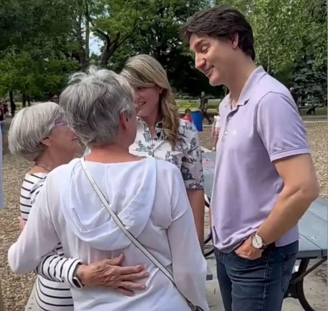 比如加拿大总理与妻子下班后逛公园,与市民相谈甚欢——