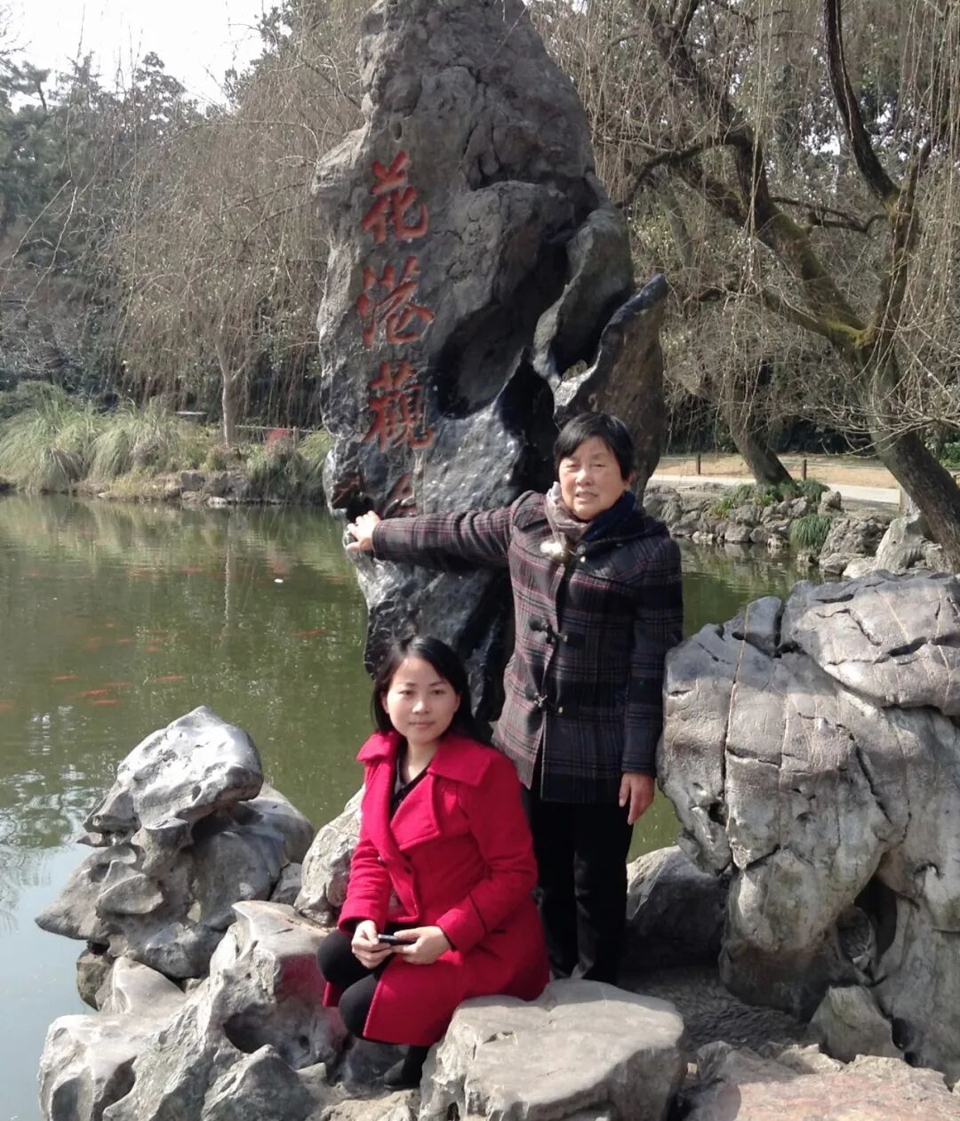 2017年作者与母亲故地重游再次于花港观鱼留影