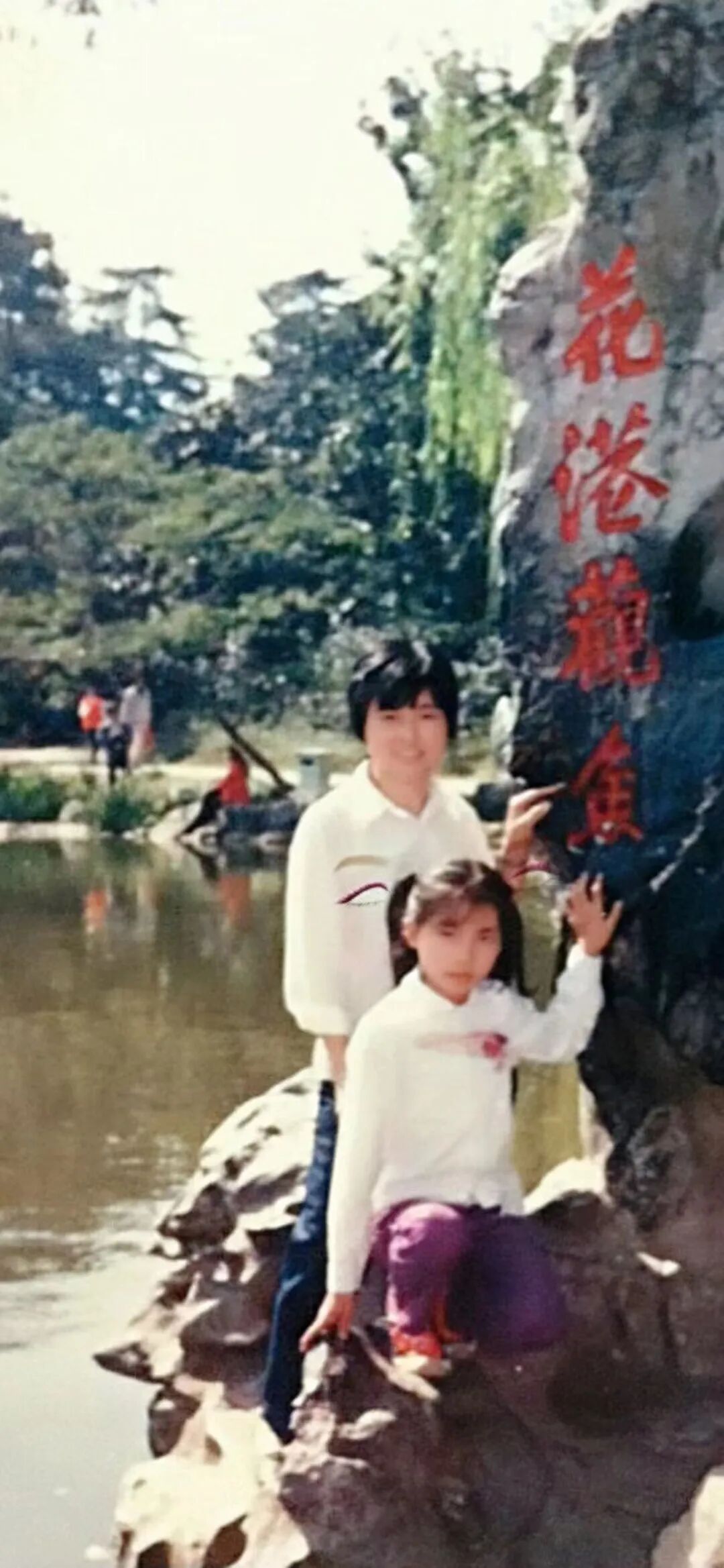 1987年作者与母亲在西湖花港观鱼的留影