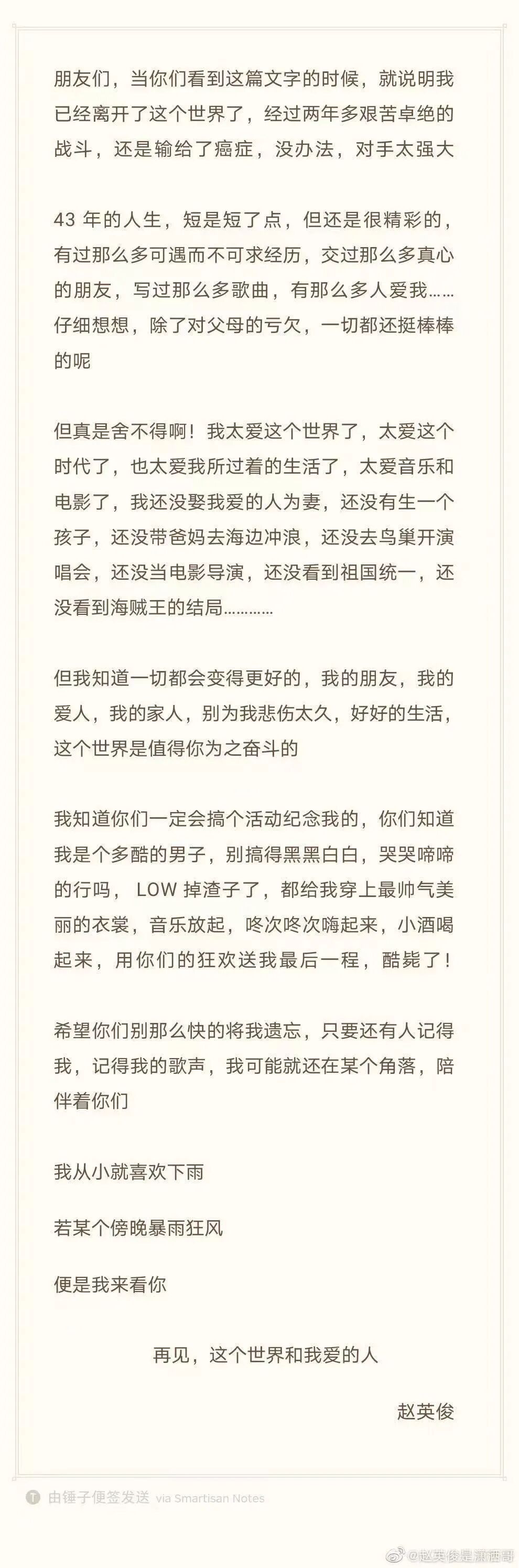 最后的最后,用赵英俊最后的告别中的一段话,与大家共勉: