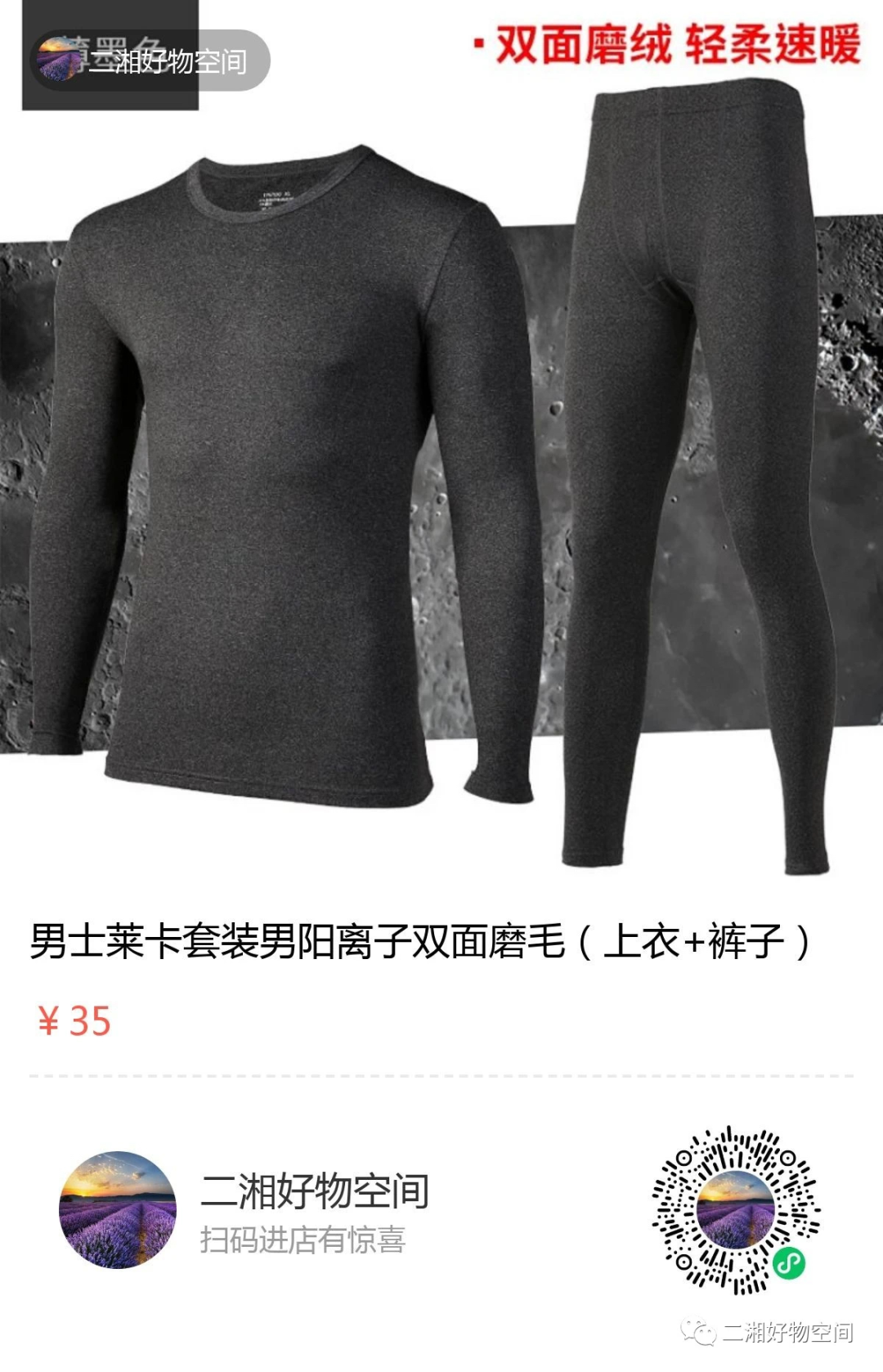 一周年之际,我们把去年口碑不错的几个品牌重新推出,供应商由于想清货,这次供货价比去年低了很多,比如说这个男士莱卡双面磨毛,上衣+裤子包邮¥35,这个价格也是惊到了!虽然这次格外便宜,但是质量肯定都没问题,可以放心下单。