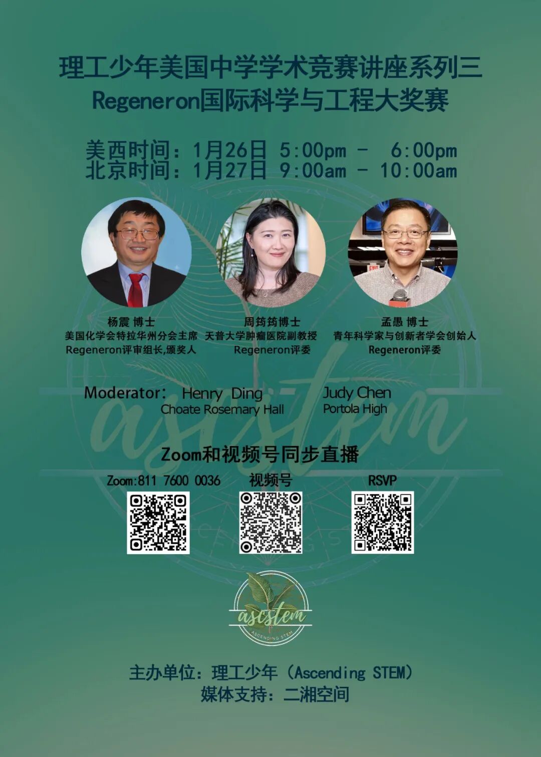 理工少年这次非常荣幸请到三位 Regeneron ISEF的评委来给大家讲讲这个科学大赛的流程、规则和意义,非常宝贵的机会,对科学竞赛感兴趣的孩子一定不要错过。