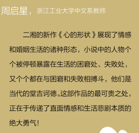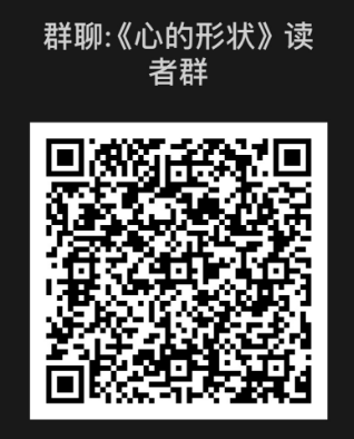 特意为这本书创建了一个《心的形状》读者群,如果你买了这本书,或者对这本书感兴趣,想看这本书,请长按这个二维码加入读者群(或加微信erxiang8d),我会在群里回答和此书以及和文学写作等相关的问题。