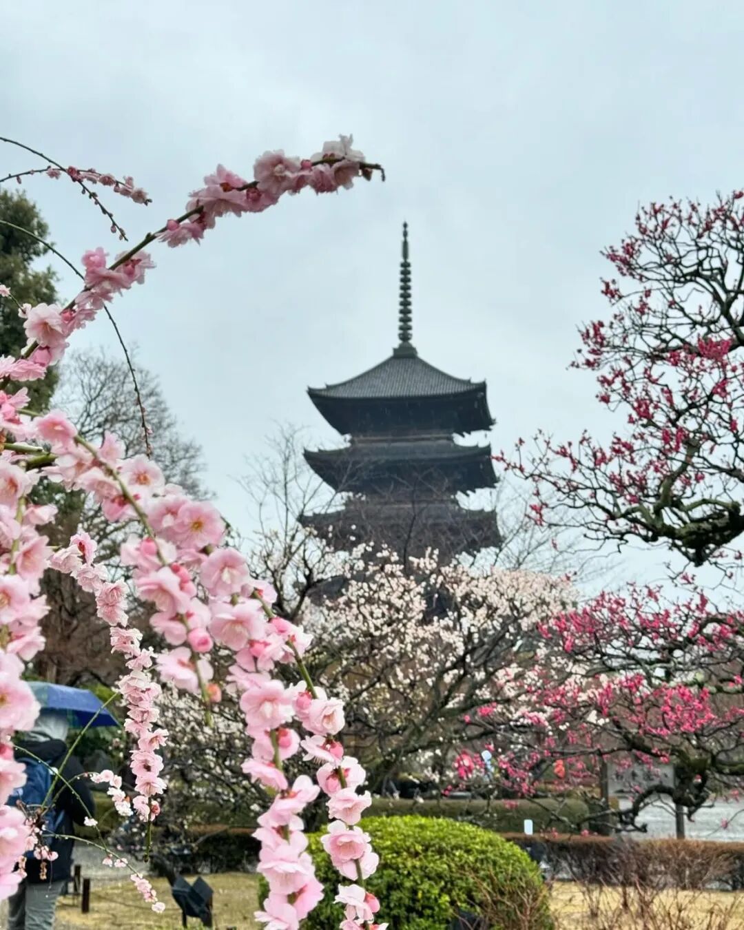 朋友沉迷于烟雨中古老的京都建筑里,其中,浅草寺里的樱花和细雨让她流连忘返,源源不断地给我发来赞叹: