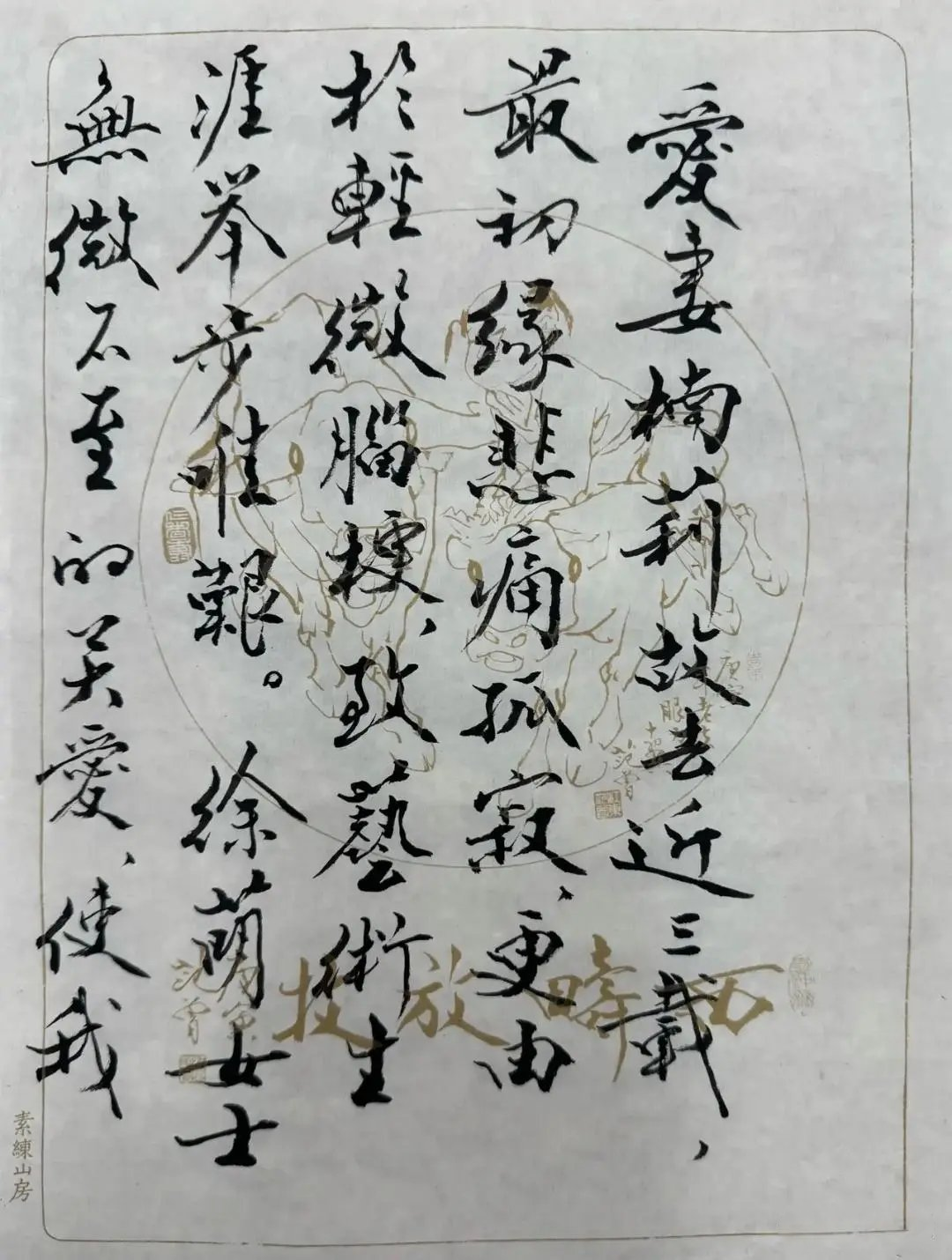 文中写道:爱妻楠莉故去近三载,最初缘悲痛孤寂,更由于轻微脑梗,致艺术生涯举步维艰。徐萌女士无微不至的关爱,使我身心全面康复。徐萌不唯关怀且鼓励我艺事长青,对中国优秀文化传统更作贡献,情深谊笃,经我俩双方同研详究,愿永结连理,正式结婚登记,艺林佳话,此足徵矣。