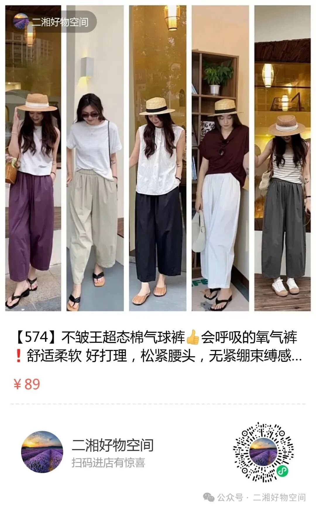 第四盘货:服装。这期的气球裤,我觉得各个年龄段都能穿,你甚至可以和妈妈组个亲子装。透气性会很好。夏天穿也不会黏腻、不闷热,穿去跳广场舞会很拉风~