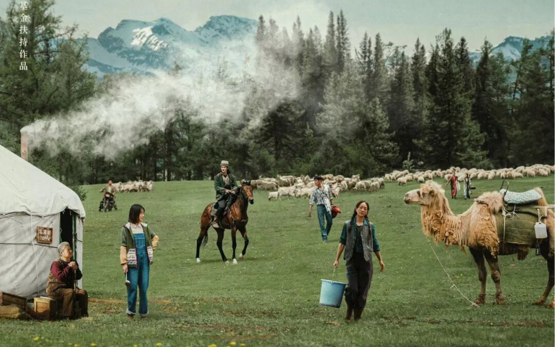 不过无论如何,对于喜欢李娟熟悉李娟作品的人,看到原著中的一些场景被搬上屏幕,还是有种莫名的熟悉和感动,比如下暴雨的日子在帐篷中用各种塑料袋接雨水;比如在荒野中睡觉;比如牧民如何在小卖店赊账,如何还账;比如洗衣服时在黑乎乎的羊油肥皂中发现小肉块;比如妈妈的大大咧咧却又金句百出;比如乡村舞会上的歌舞;比如过年放的烟花;比如羊道和牧民的转场;