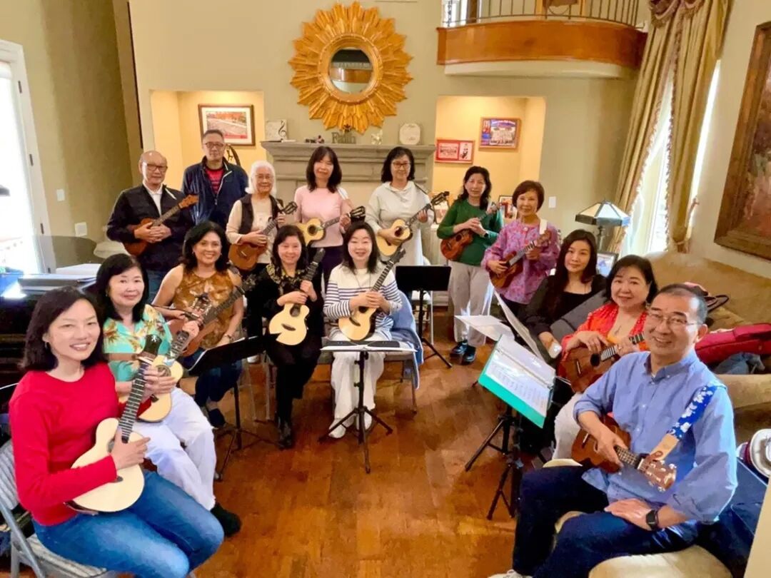 我们的乌克丽丽老师,带着大部分的同学回台湾参加台湾国际乌克丽丽嘉年华。我们“留美”的同学们,今天在我家一起弹唱数首中英文歌曲。