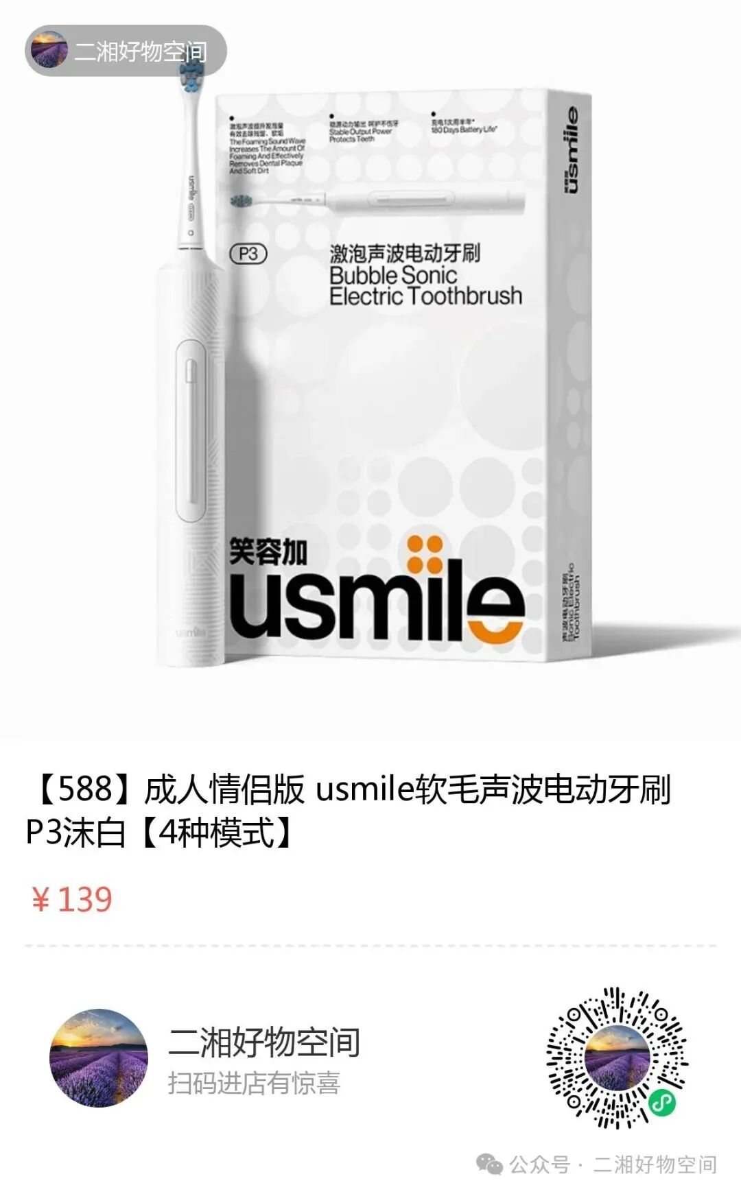 第二盘货:usmile的电动牙刷。这款有4种模式,全机防水,电量抗用。