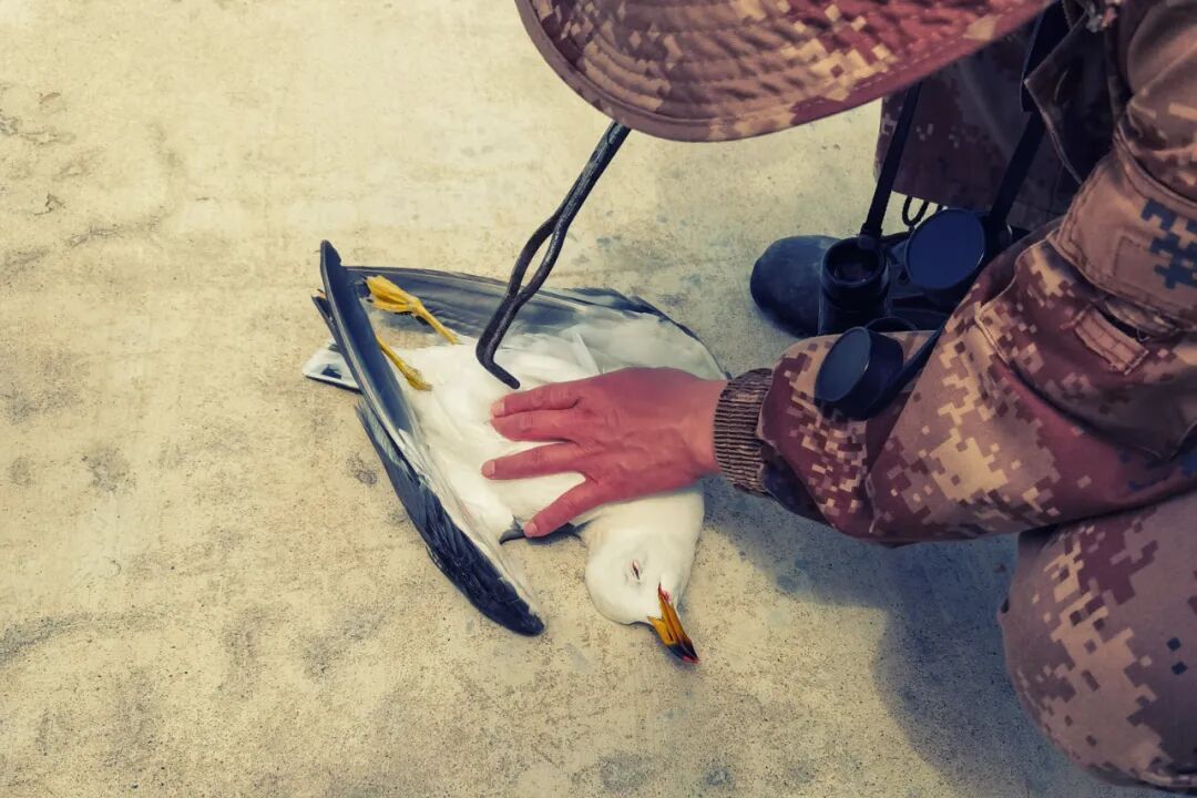 王小平科长检查坠落的海鸥 摄影:吉它木影