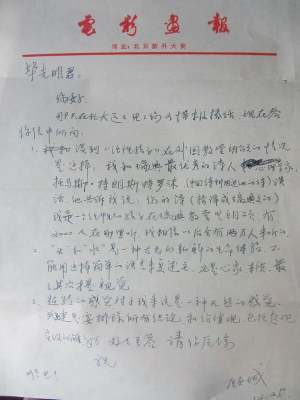 顾母也不停地说起顾城,并臧否与顾城交往过的人。他俩也对我说起我评顾城的那篇文章,说他们当年一直想找到我的地址,向人打听,写过信,也没收到。他们说顾城从国外回来还问到同我联系上没有,说在写他的评论中,只有《唯灵的浪漫主义》那篇写得最好,最准确,是真正理解了他的诗,分析得很好。