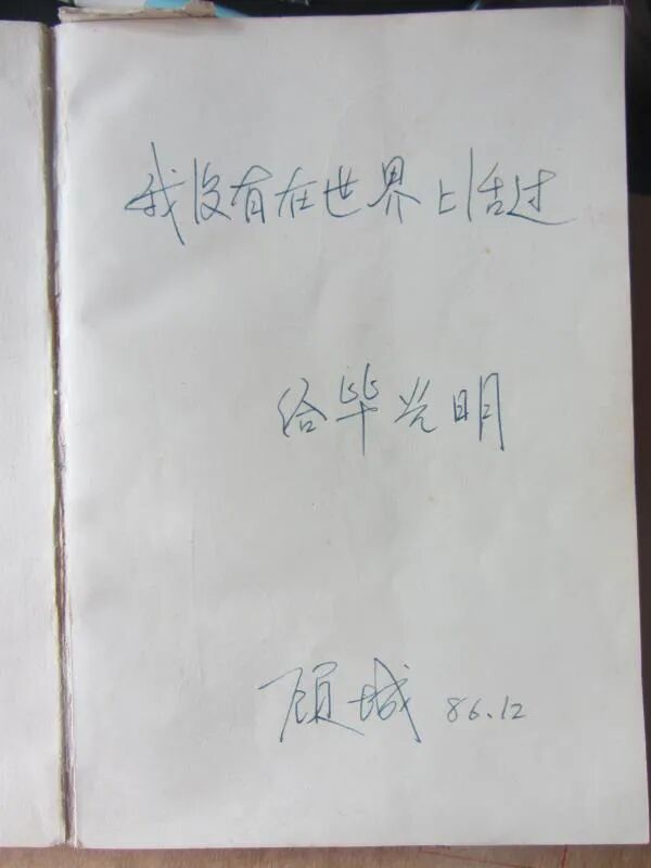 后来一次我和樊洛平又去找他,他和谢烨都没在家,他爸妈热情地接待了我们。顾工热情洋溢地给我们讲顾城童年的故事,讲顾城和谢烨的神话般的爱情。说顾城八岁就开始作诗,口授让他姐姐在纸上记下来,装在信封里,让她姐姐把他抱起来,把信投进邮筒,寄到他爸爸的单位里。同事们看了顾城的诗,对顾工说:你是诗人,你的儿子以后也是诗人!