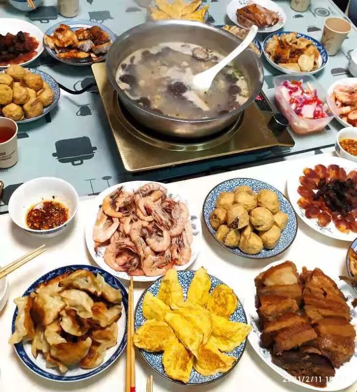 条件好一点的是我弟弟一家。夫妻都在体制内工作,供儿子上大学没什么压力。弟弟带来了一只鸡,弟媳妇做了豆腐酿和鸡蛋酿;老公弟媳妇也带来了一只鸡。我煎了马鲛鱼,做了白灼虾,蒸了香肠腊肉,包了饺子。十一个人开开心心吃了年夜饭。吃完年夜饭,除了我弟弟和弟媳,老公给每一个人500块钱红包,也算我们给家人们的祝福!
