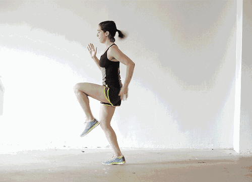 找楼前50米左右的平整地面,做完一般耐力训练后,先做10—15秒快速高抬腿,然后快速冲刺到终点。每天3—5组,间隔1分钟左右休息。