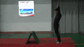 要点:小腿前伸的时机把握好,曲腿前伸臂后摆,落地后往前不往后。